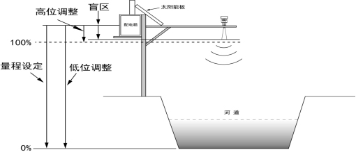 注:使用雷達(dá)物位計(jì)時(shí),務(wù)必保證最高水位不能進(jìn)入測(cè)量盲區(qū)。